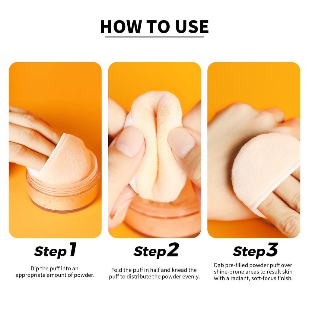 Powder puff dengan velvet shield cocok untuk mengaplikasikan makeup bertekstur powder dan mempermudah pengaplikasian di area sudut mata dan hidung.