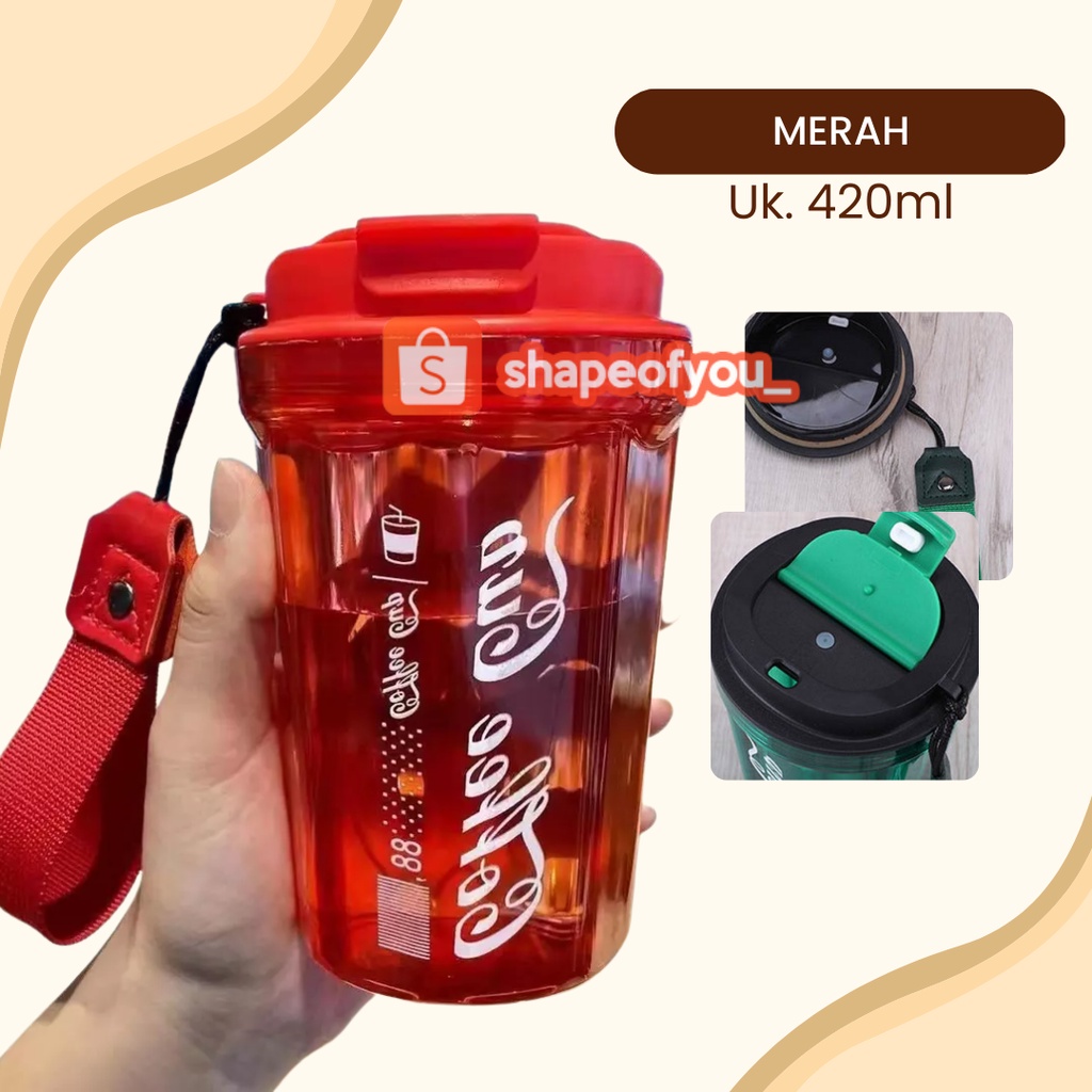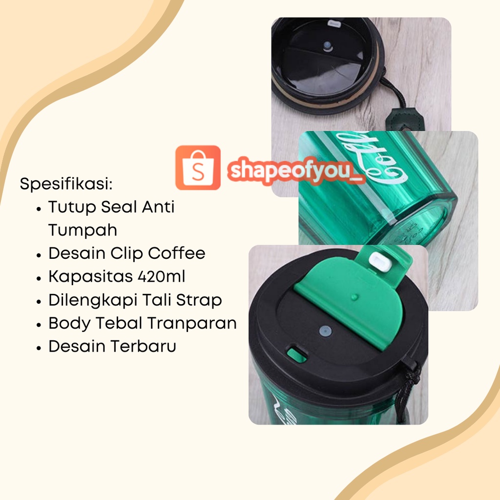 Botol Gelas Coffee Cup Plastik 420 ml Cola Series Viral Free Sticker . Detail Produk: Kapasitas: 420ml Tutup Karet Seal Anti Tumpah Ada Strap Diameter: Tutup Clip Coffee Cup FREE Sticker 2D . ❤️ SHAPEOFYOU_ ❤️