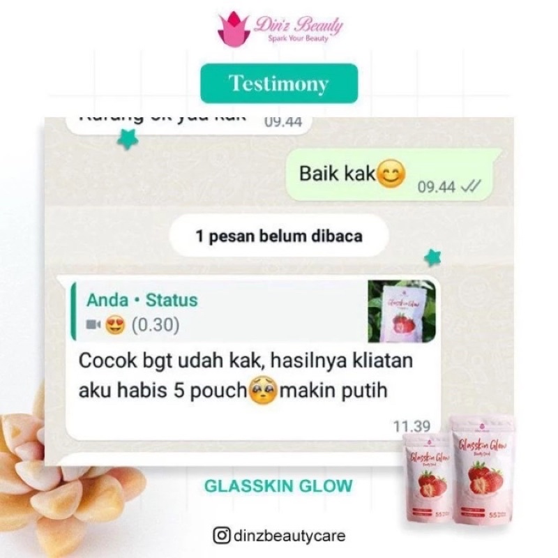 Detail GLASSKIN GLOW DRINK BY DINZ BEAUTY COLLAGEN PENCERAH TUBUH