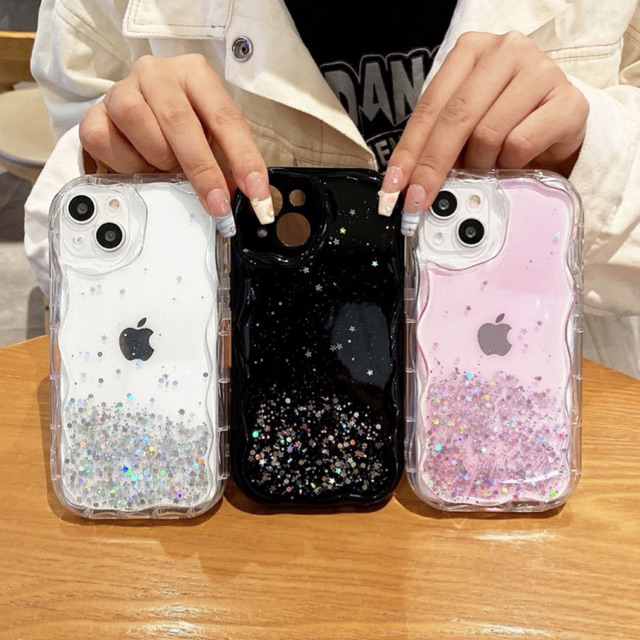 Handphone & Aksesoris > Casing & Skin > Casing & Skin Handphone > GLITTER Silicone TPU Wave Case Transparan / Pink / Black Camera Protection Iphone 14 Pro Max 14 Plus 13 Pro max 13Pro 11 11 Pro Max 12 Mini 12Pro 12PROMAX 13PROMAX 14Pro