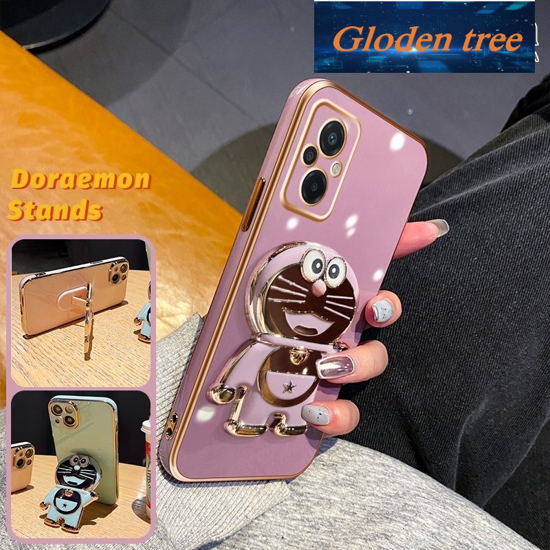 Handphone & Aksesoris > Casing & Skin > Casing & Skin Handphone > Gloden tree Casing Untuk Xiaomi Poco M5 Case Fashion Kartun Doraemon Lipat Stand Phone Case Electroplating Shockproof Phone Holder Case