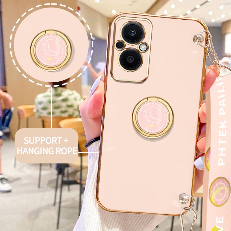 Handphone & Aksesoris > Casing & Skin > Casing & Skin Handphone > Gloden tree Phone Case Untuk OPPO Reno 7Z Reno 8Z Reno 7 Lite Reno 5 Lite 5G F21 Pro 5G Original Casing Dengan Jam Standand Lanyard