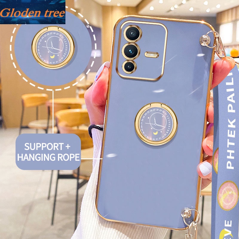 Handphone & Aksesoris > Casing & Skin > Casing & Skin Handphone > Gloden tree Phone Case Untuk Vivo S12 Pro 5G V23 Pro 5G V27 Pro V27E IQOO Z6 Pro V25 Pro 5G Original Casing Dengan Jam Standand Lanyard