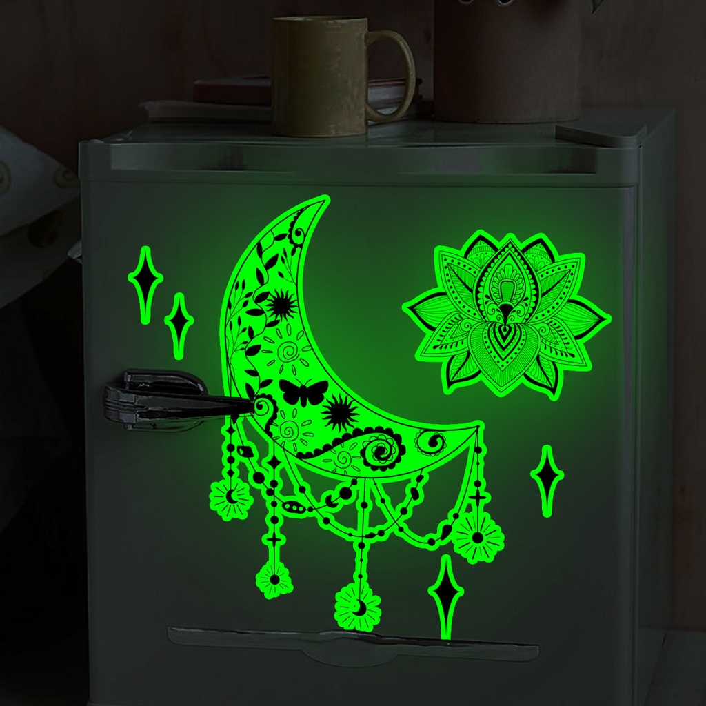 Detail Glow Moon Lotus Stiker Dinding Glow Ruang Tamu Perekat Diri Dekoratif Dinding Decals