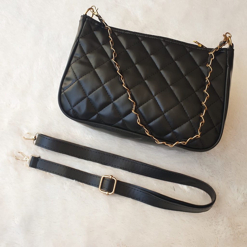 Free Dos Packing, Buat Tas Sampai Tujuan Dengan Aman. GLOW ~ Good Quality Bag Bahan : Covie Impor Premium, Tebal Dan Lentur. Ukuran : P 26 X T 17 L 7 Cm Multi Fungsi Bisa untuk Tas Bahu, Tenteng Juga Selempang. Tali Pendek Rantai Bahan dan Tali Selempang Panjang Bisa dilepas Pasang. Kuatitas Premium, Jahitan Rapi. Dilengakapi Resleting sehingga barang bawaan aman Kantong dalam dilapisi kain Foring Tebal. Cocok Dipakai Untuk Segala Acara.