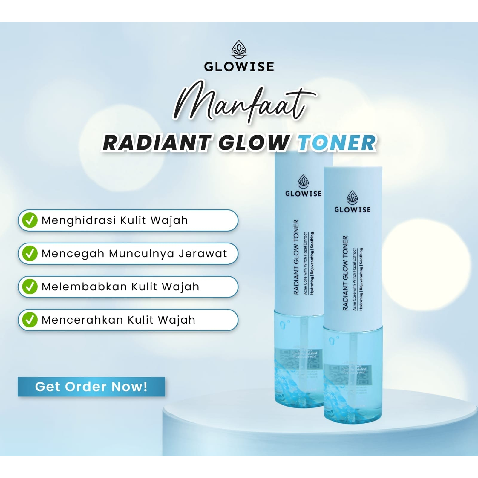 Glowise Radiant Glow Toner diformulasikan untuk membantu mencerahkan ,mengencangkan, dan merawat kulit wajah berjerawat serta mengembalikan ph alami kulit wajah.