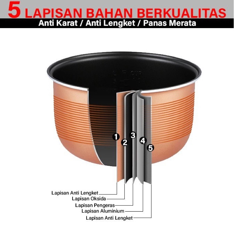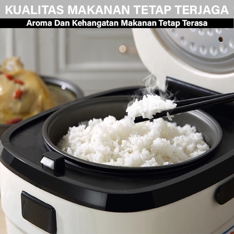 Satu alat memmiliki 8 fungsi (Memasak nasi, stew, porridge, yogurt, baking/cake, bb porridge, warm, reservation). Design handle hand mudah dipindahkan Lapisan dalam anti lengket Dilengkapi dengan smart timer Tombol extra besar (One klik buka-tutup)