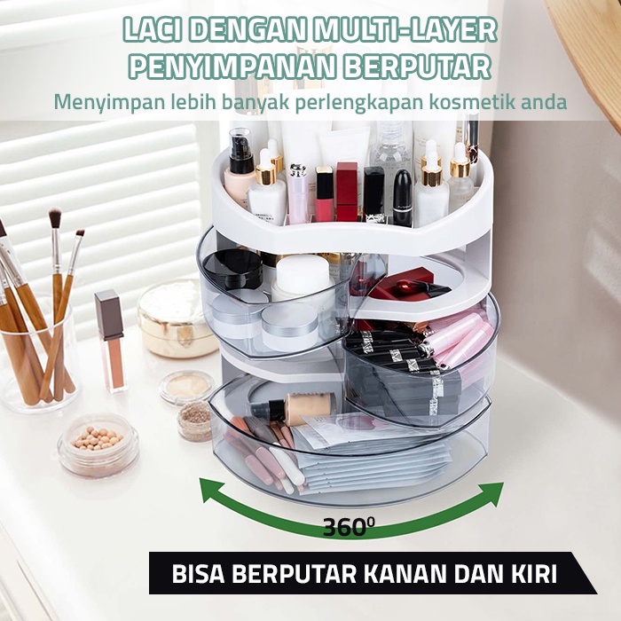 SEDERHANA DAN PRAKTIS - . Laci pada rak ini dapat diputar ke kiri dan kanan, memudahkan anda mengambil produk di dalam kotak make up ini. Terbuat dari plastik ABS, yang mudah dibersihkan dan tahan lama.