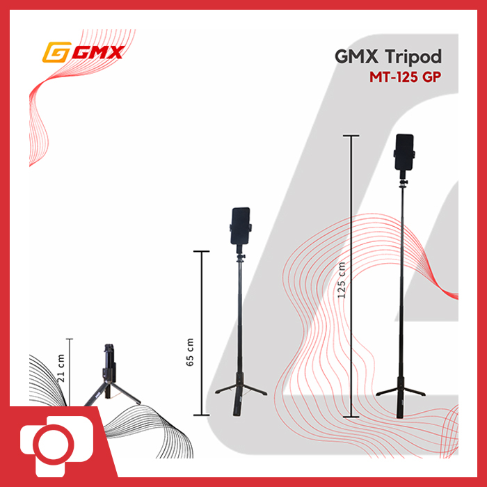 GMX Mini Tripod MT-125 GP dirancang untuk smartphone dan action kamera seperti Brica, GoPro, Akaso, dll. Dengan dukungan kit selfie yang dapat digunakan sebagai mini tripod, Tabletop tripod dan Tongkat selfie. GMX MT-125 GP merupakan aksesori multifungsi yang mesti anda miliki untuk fotografi, shooting video, time-lapse dan long exposure shooting anda. Dilengkapi dengan shutter release Bluetooth yang akan mempermudah anda dalam mengambil gambar.