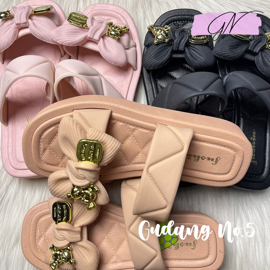 Detail GN-856-1 2 & 3 Sandal Selop Jelly Model Pita Wedges Fashion Wanita Terbaru Import PCU