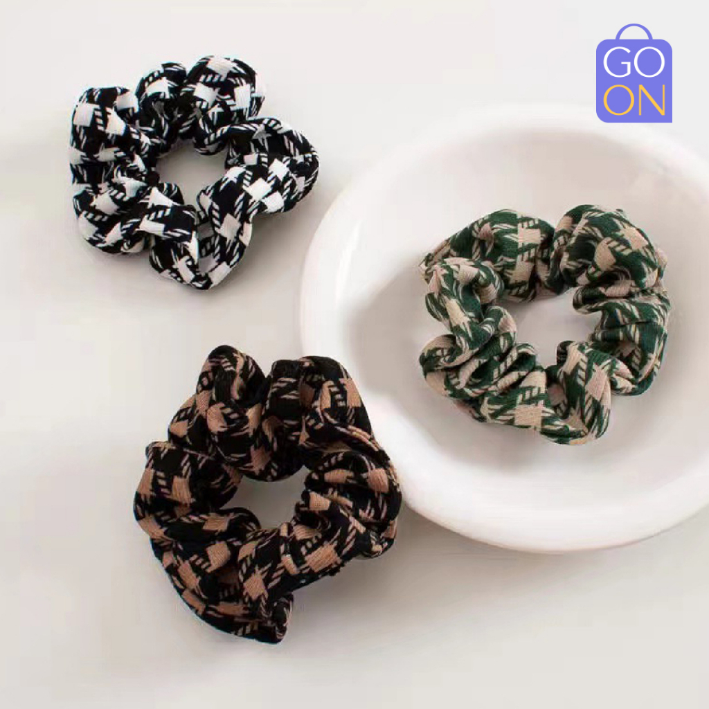 Detail GO ONLINE Scrunchies Ukuran Kecil Pattern Kotak (Houndstooth) - Kunciran ikat rambut