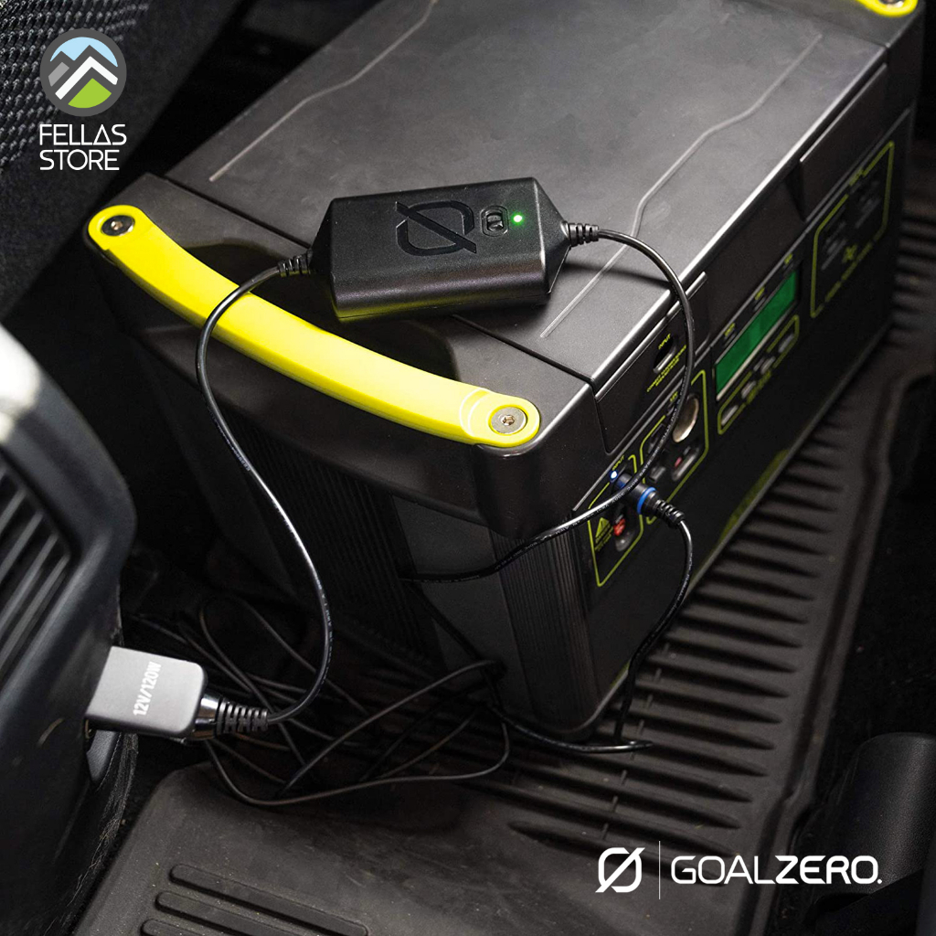 Used to safely and efficiently charge a Sherpa 100AC, Goal Zero Yeti X, Lithium, or Lead-Acid from a 12V source, featuring a protective 15A user-replaceable fuse.