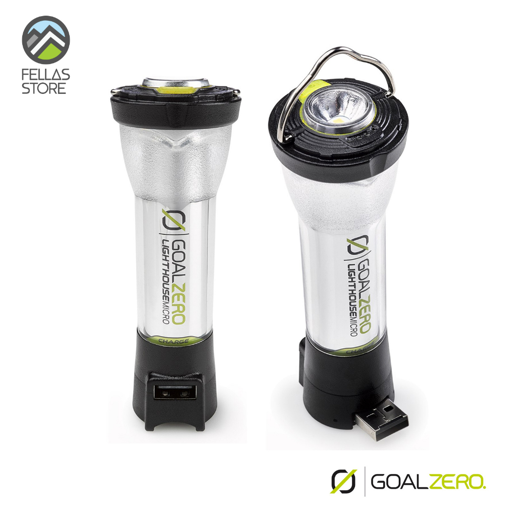 Goalzero - Lighthouse Micro Charge USB Rechargeable Lantern Product Description The Goal Zero Lighthouse Micro Charge Flashlight is a great light for people on the go. This bright flashlight is designed for easy carrying and even easier recharging. It features adjustable light settings and offers up to 170 hours of light on low. It can recharge small devices with the included USB port and can be recharged using any USB-compatible cable and outlet or a compatible solar panel.