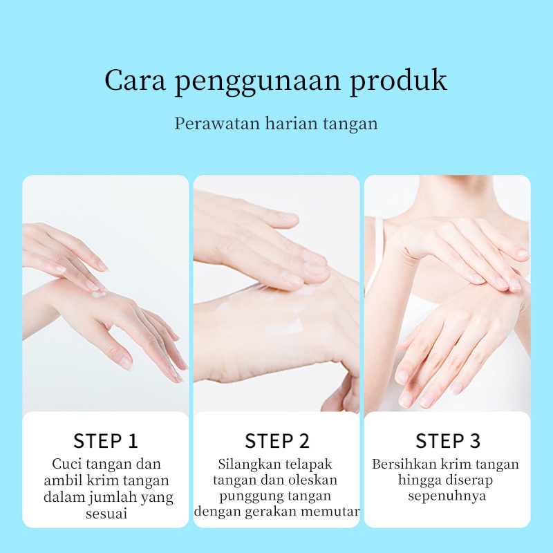 Applicable steps: 1. Apply an appropriate amount of hand cream to the back of the hand. 2. Evenly spread and Massage until absorbed. 3. Strengthen Massage on deep lines such as knuckles and knuckles.