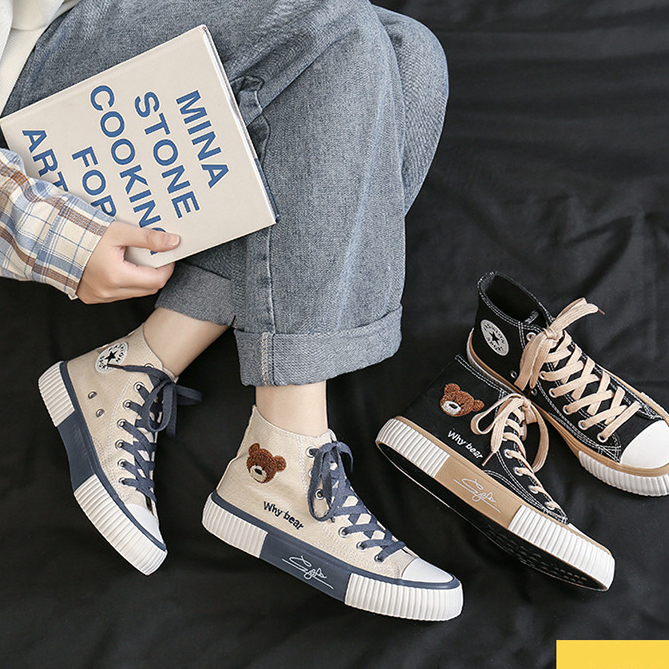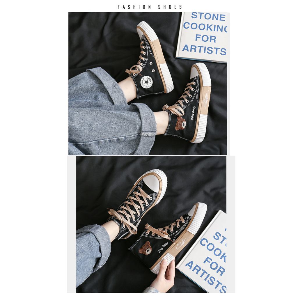 Sepatu Wanita > Sneakers > Gobra ♕ SEP032 (Tanpa Kotak) Sepatu Sneakers Wanita Why Bear Kanvas Sporty Model Korea Fashion Casual Sport Olahraga Import COD