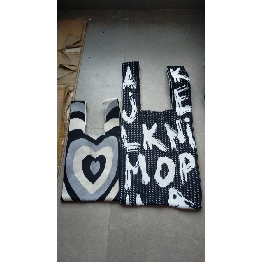 Tas Wanita > Tote Bag > Tote Bag > Gobra ♕ TW021 (Size Kecil) Tas Rajut Size Kecil Bene Korean Knitted Checkered Tote Bag Tas Rajut Huruf WarnaTotebag Buffollow Vacay Viral Bangkok Import COD