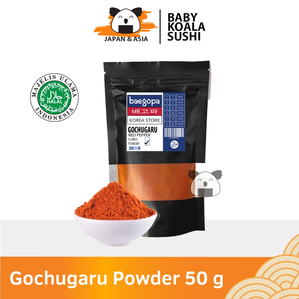 GOCHUGARU merupaka bubuk cabai khas Korea, yang menjadi salah satu bumbu makanan yang populer di Korea. Gochugaru ini memiliki bentuk bubuk yang Halus dan berwarna agak Orange. Bubuk cabai ini biasa digunakan dalam pembuatan berkuah, seperti saus toppokki.