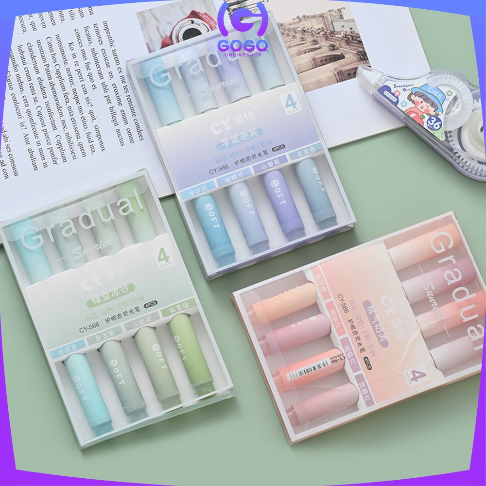 Buku & Alat Tulis > Alat Tulis > Spidol > GOGO-A55 Highlighter Pastel Penanda Teks Set 4IN1 Alat Tulis Sekolah / Spidol Pen Marker Warna Gradasi Painting Multifungsi / Textliner Stasionary Import