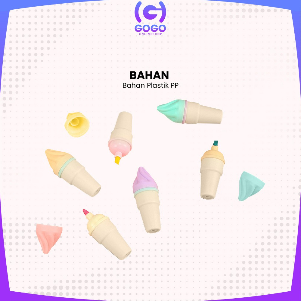 Detail GOGO-A57 Highlighter Pen Es Krim Cone Monas 6 in 1 Free Pouch Penanda Berwarna / Spidol Highlighter Model Ice Cream Cone Unik Alat Tulis kantor Stationery