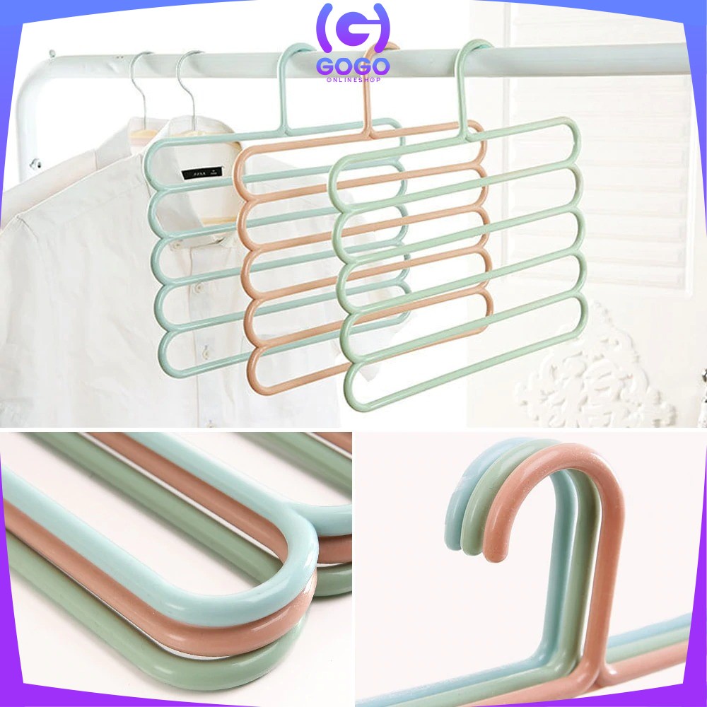 Features : 1. Jika lemari pakaian terlalu penuh atau berantakkan, Gunakan Hanger ini untuk menghemat ruang lemari pakaian. 2. Menjaga pakaian tetap rapi dan bebas kerut. 3. Sambungan fleksibel di kedua ujungnya untuk penggunaan horizontal atau vertikal. 4. Bahan PP yang berkualitas dan tahan lama. 5. Memiliki sembilan lubang dan Dapat berputar 360 derajat.