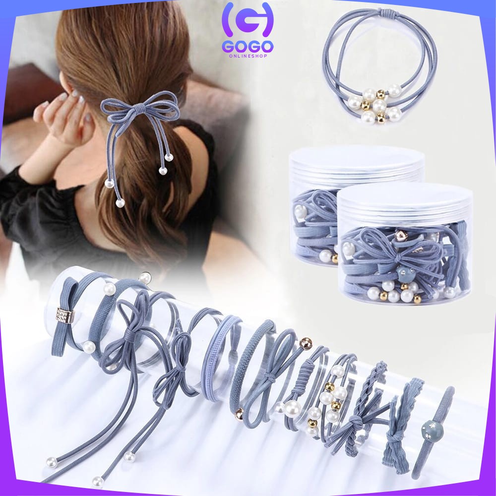 Detail GOGO-C13 12 Pcs Ikat Rambut Karet Pearl Mutiara Pita Aksesoris Rambut Wanita Anak korean style