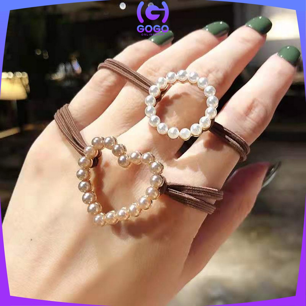 Detail GOGO-C215 Karet Ikat Rambut Mutiara Motif / Kuncir Rambut Korea / Kunciran Rambut Anak / Karet Kuncir