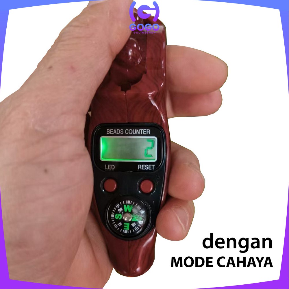 GOGO-C582 Tasbih Digital Motif Kayu Led + Kompas / Tasbih Kayu Alat Hitung Tahlil Finger Counter Compas / Muslim Tasbih