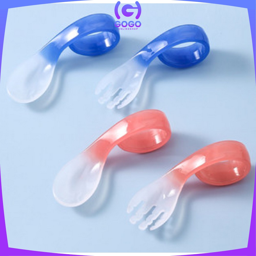 Detail GOGO-C706 Sendok Garpu Makan Bayi Sensor Suhu Panas / Sendok Makan Bayi Sensor Panas / Alat Makan Set MPASI Bayi