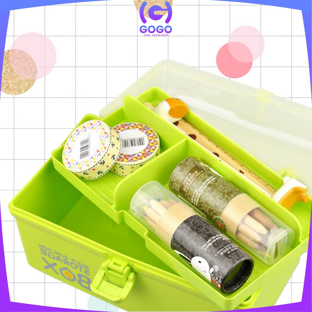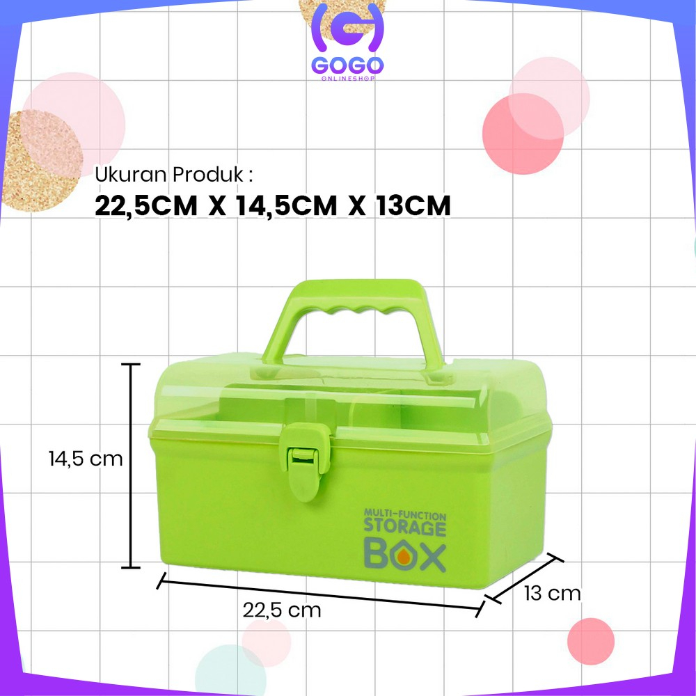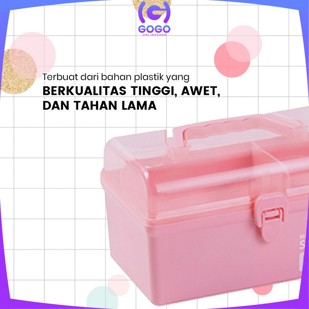 Keunggulan : - Bahan utama PP Plastik. - Dapat digunakan sebagai tempat penyimpanan P3K, obat, kosmetik, skincare, dan lain sebagainya. - Terdapat handle atau pegangan dibagian tutup sehingga mudah dibawa kemana-mana. - Model unik dan tidak umum di pasaran