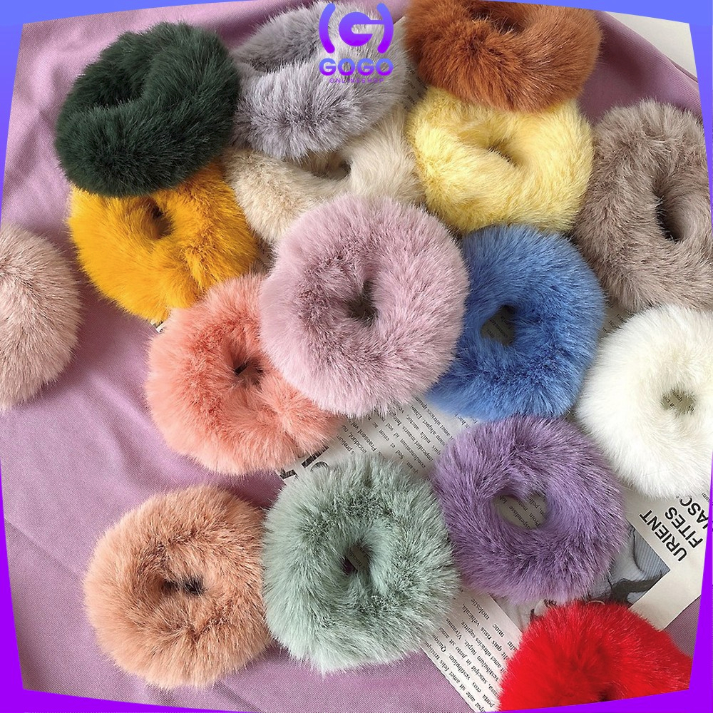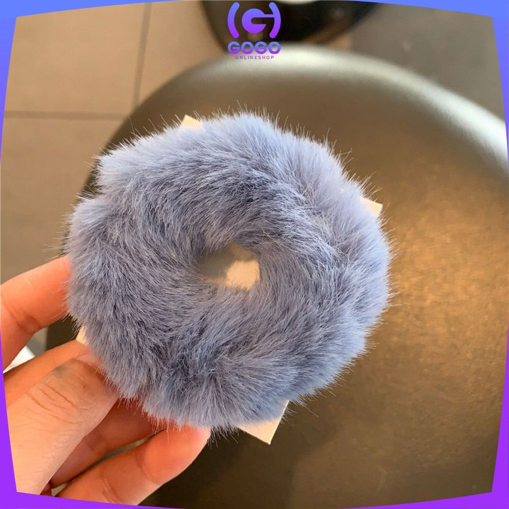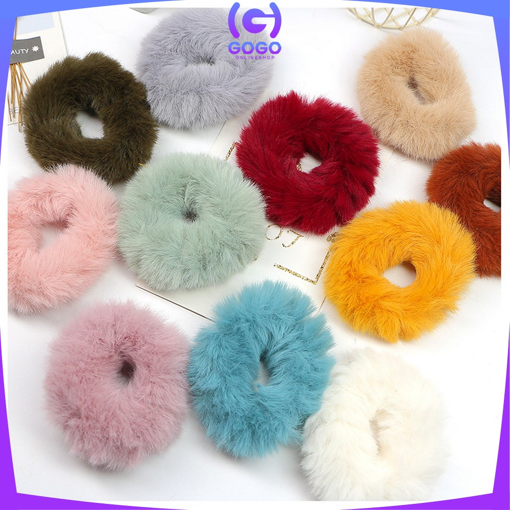 GOGO-C877 Ikat Rambut Bulu Pompom Polos Elastis Korean Style / Scrunchie Ponytail Ikat Rambut Anak Perempuan / Karet Aksesoris Rambut Cepol Wanita Import