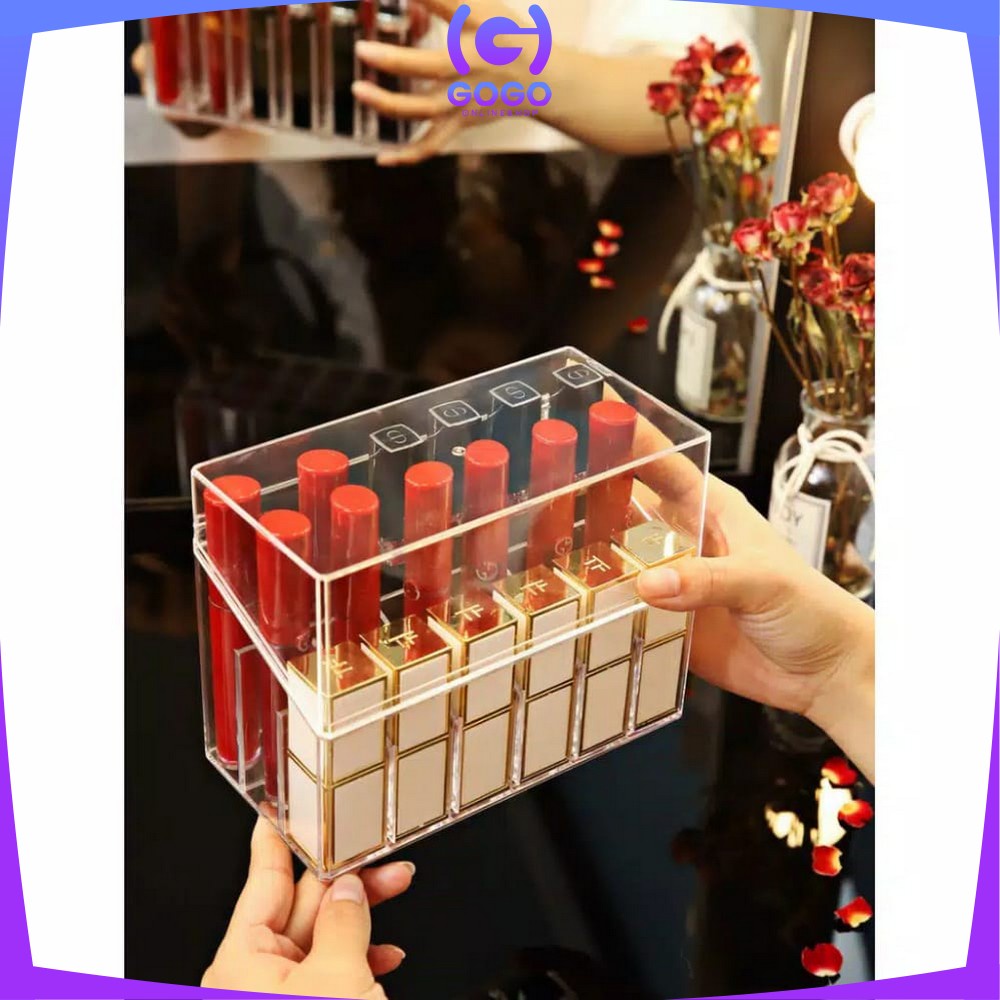 Detail GOGO-K14 Kotak Lipstik Model Handle 18 Slot / Rak Organizer Kosmetik Tempat Lipstik Bahan Acrylic