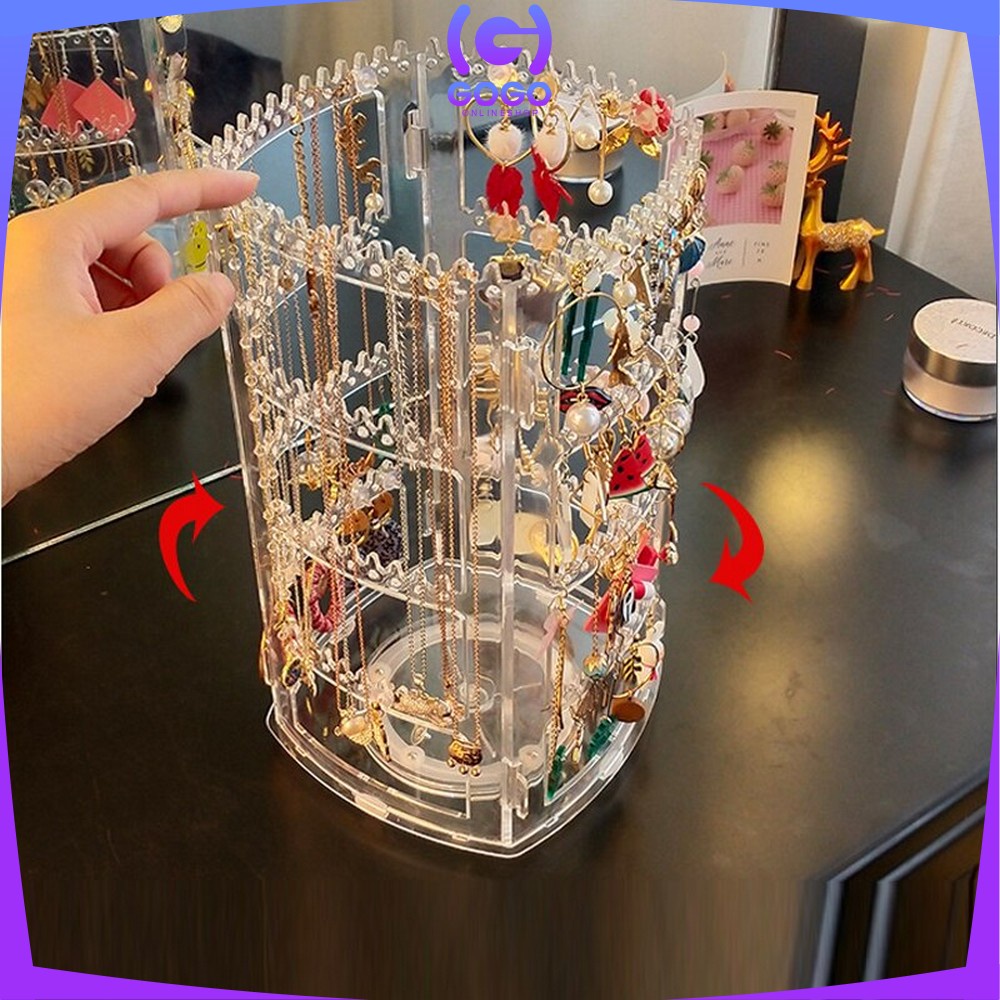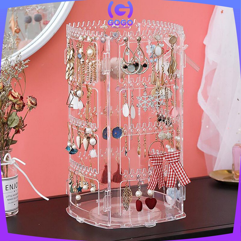 Perlengkapan Rumah > Organizer Rumah > Organizer Perhiasan > GOGO-K20 Rak Anting Acrylic Putar 360 Derajat Rak Penyimpanan Perhiasan Kalung Rak Organizer Impor