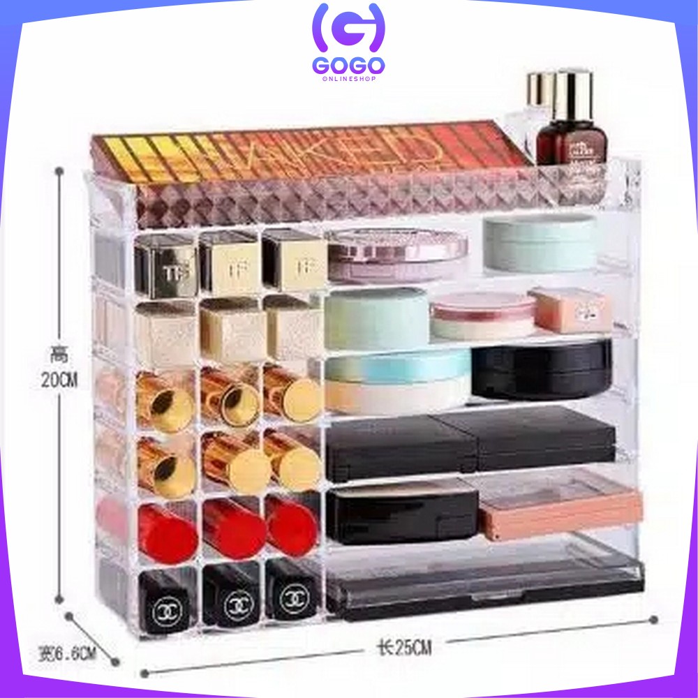 Fitur: . Terbuat dari bahan akrilik, konstruksi padat dan tahan lama. . Tata letak riasan dengan sempurna, bedak wajah, blush on, bayangan mata, dan sebagainya.