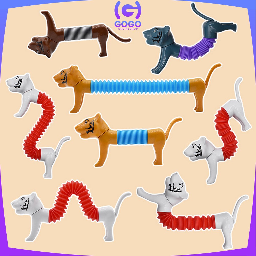 GOGO-M283 M284 Mainan Pop Tubes LED Anak Motif Hewan Stretchy Kuda Tarik Light Up Pop Pipes / Mainan Buaya Fidget Pipa Lampu Stick Anak