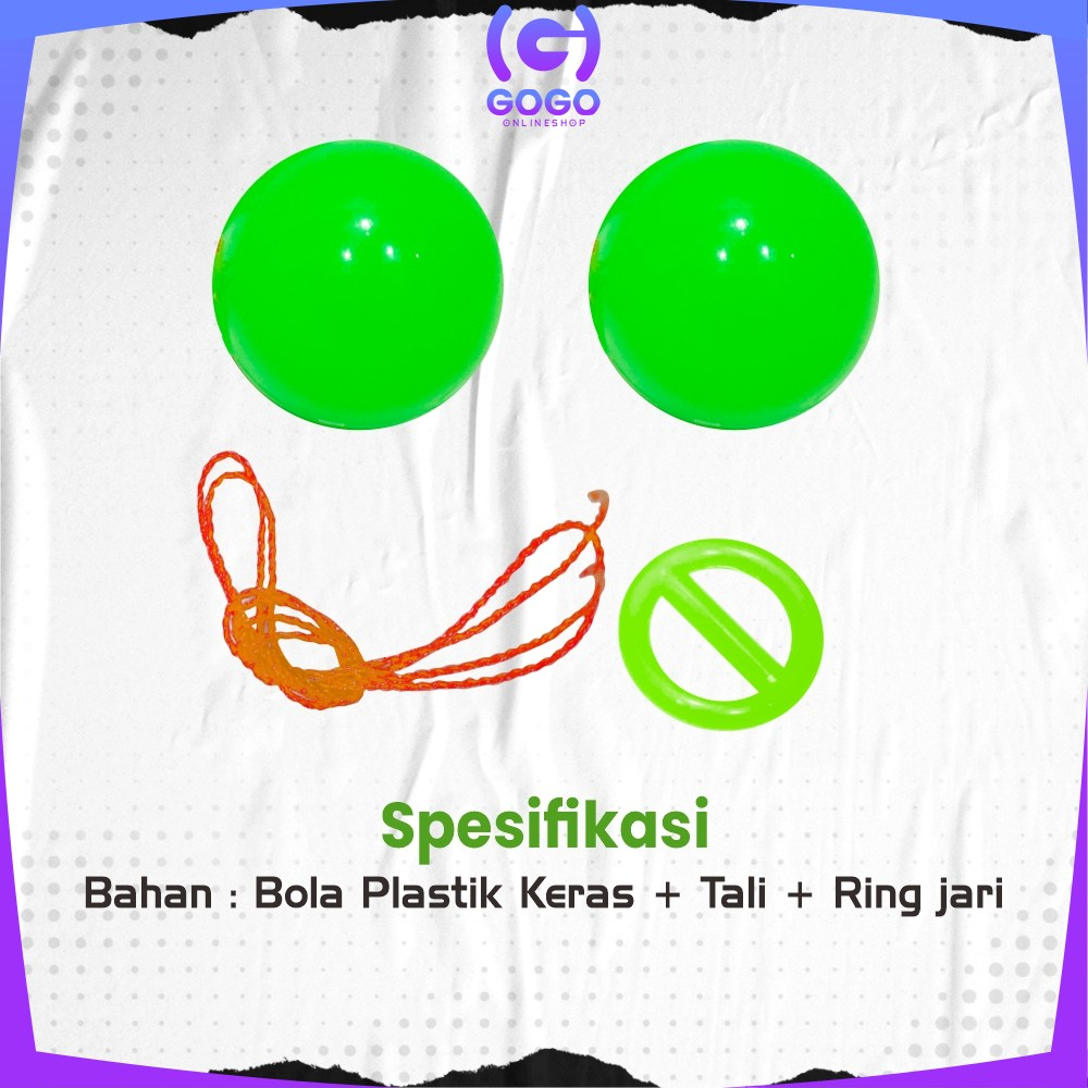 Spesifikasi : - Bahan : Bola Plastik Keras + Tali + Ring jari - Ukuran Diameter Keliling Bola : ±12,5cm - Panjang Keseluruhan Tali : ±50cm
