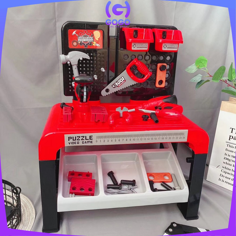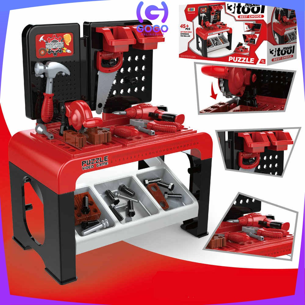 Detail GOGO-M43 Mainan Anak Laki Laki Perkakas Alat Tukang Bangunan 46PCS Mainan Tool Set Bor Gergaji Palu