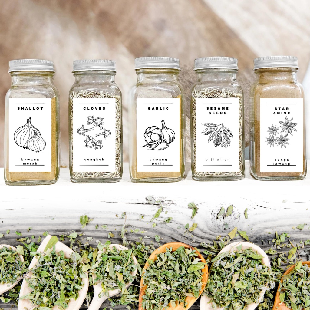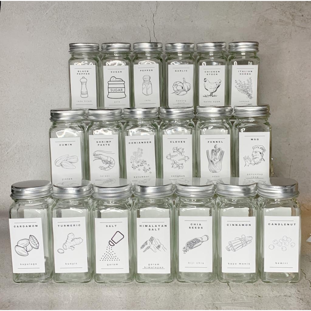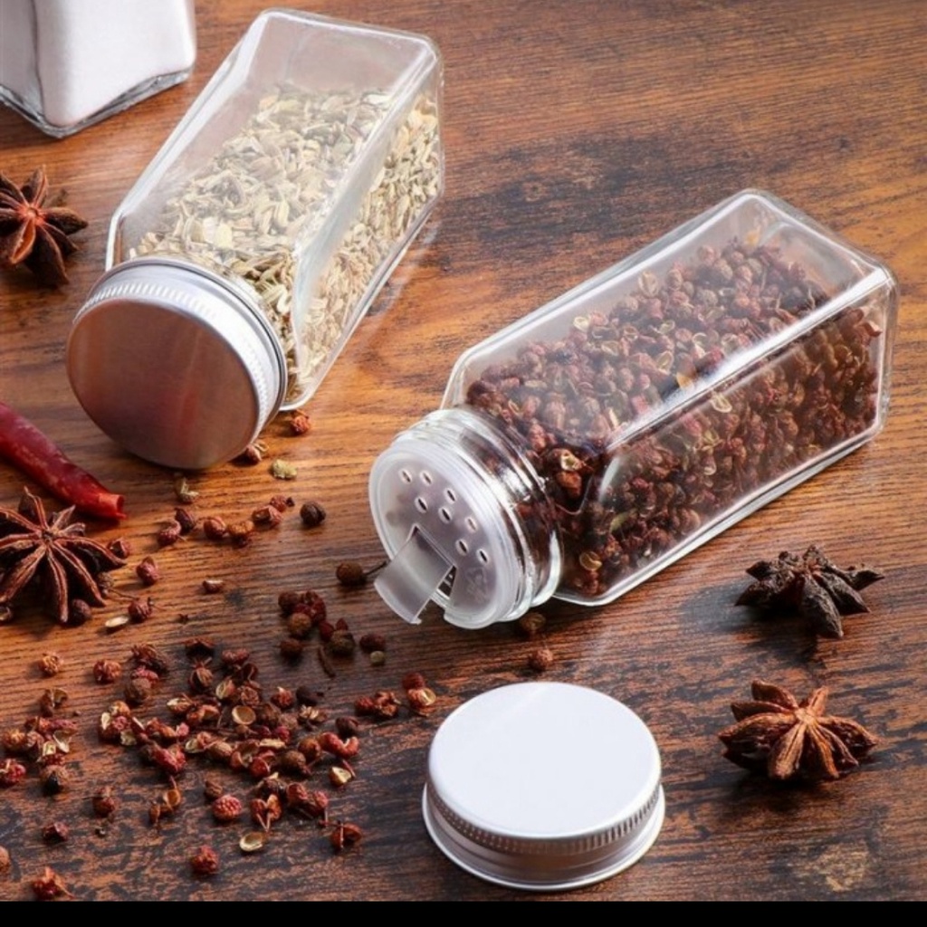 Wadah bumbu yang mengubah dapur menjadi lebih cantik dan rapih, terbuat dari kaca tebal sehingga aman dan tidak berbahaya untuk bumbu dapur, kaca bening juga membuat lebih mudah untuk melihat bumbu di dalamnya. Tutup juga terbuat dari metal sehingga kedap udara sehingga bumbu lebih segar dalam waktu lama.