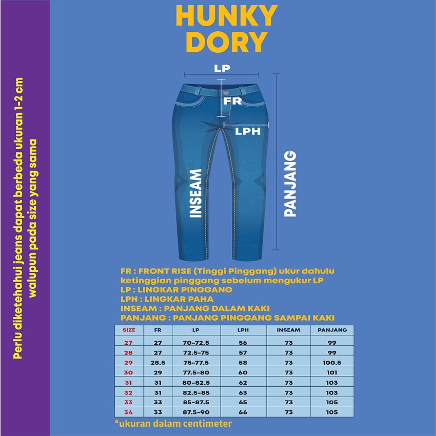 * Size 27 = Untuk BB 40 kg-45 kg * Size 28 = Untuk BB 46 kg-49 kg * Size 29 = Untuk BB 50 kg-55 kg * Size 30 = Untuk BB 56 kg-59 kg * Size 31 = Untuk BB 60 kg-65 kg * Size 32 = Untuk BB 66 kg-72 kg * Size 33 = Untuk BB 73 kg-78 kg * Size 34 = Untuk BB 79 kg-85 kg