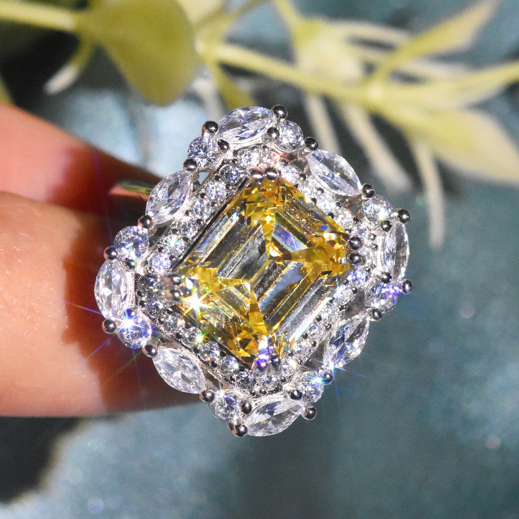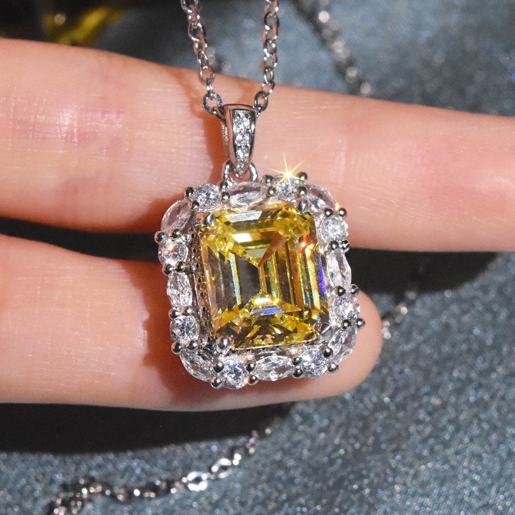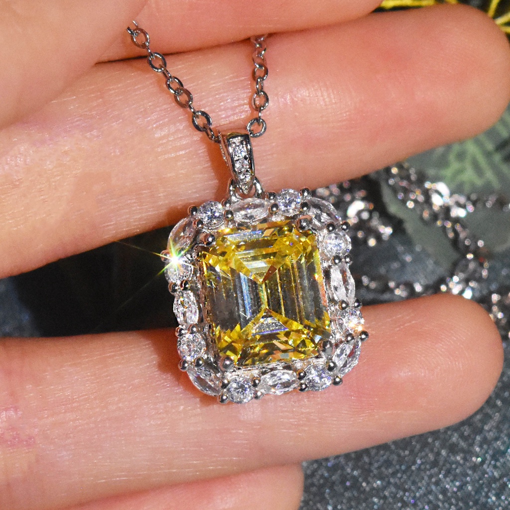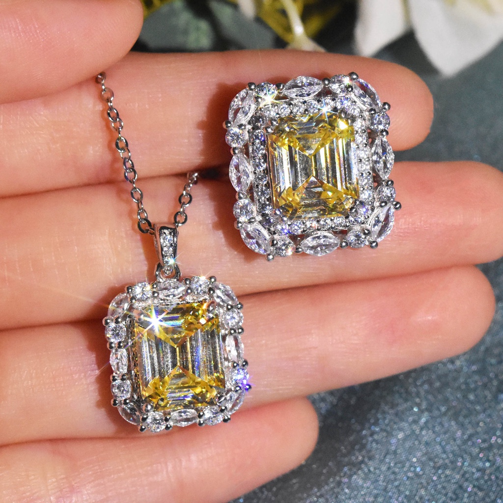 Detail Goldkingdom Aksesoris Perhiasan Fashion Ready Stock S925 Sterling Silver Set Cincin Terbuka Liontin Wanita Antarmuka Besar Berlian Kuning Berwarna Harta Kalung