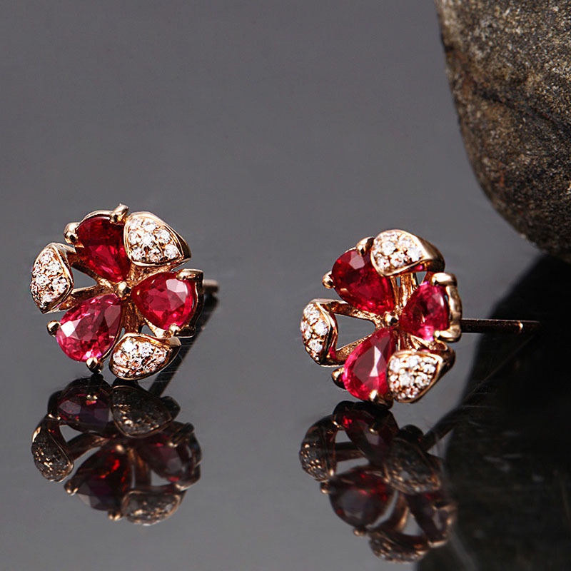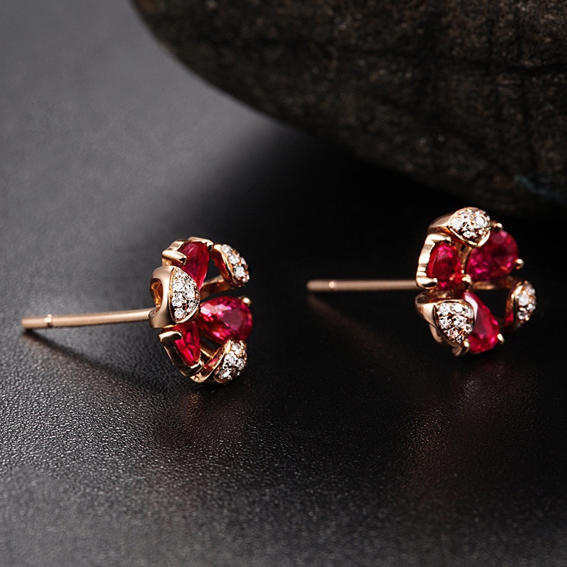Detail Goldkingdom Aksesoris Perhiasan Fashion Ready Stock Anting Ruby Darah Merpati Berwarna Rose Gold Earrings Silver