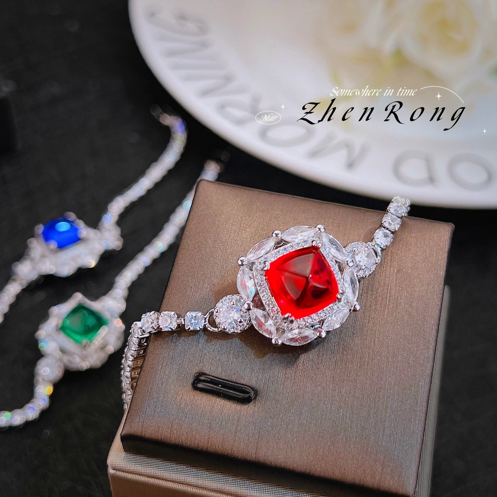 Detail Goldkingdom Aksesoris Perhiasan Fashion Ready Stock Ruby Sugar Tower Light Mewah Colorful Treasure Gelang Royal Blue Diamond Emerald Girl