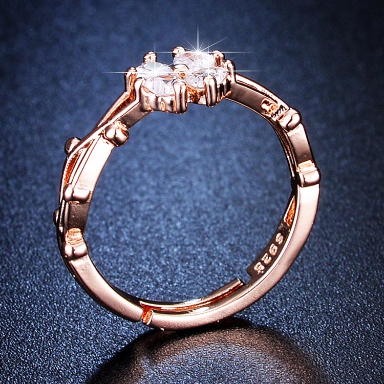 Aksesoris Fashion > Cincin > Goldkingdom Aksesoris Perhiasan Fashion Ready Stock Jepang Dan Korea Empat Daun Semanggi Benang Zirkon Bunga Cincin Net Selebriti Kepribadian Fashion Perempuan Niche Desain Cinta Cincin