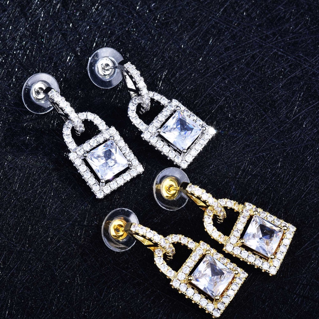 Detail Goldkingdom Aksesoris Perhiasan Fashion Ready Stock Dengan Micro Studded Small Lock Earrings, Earrings, Mesh Red Earrings