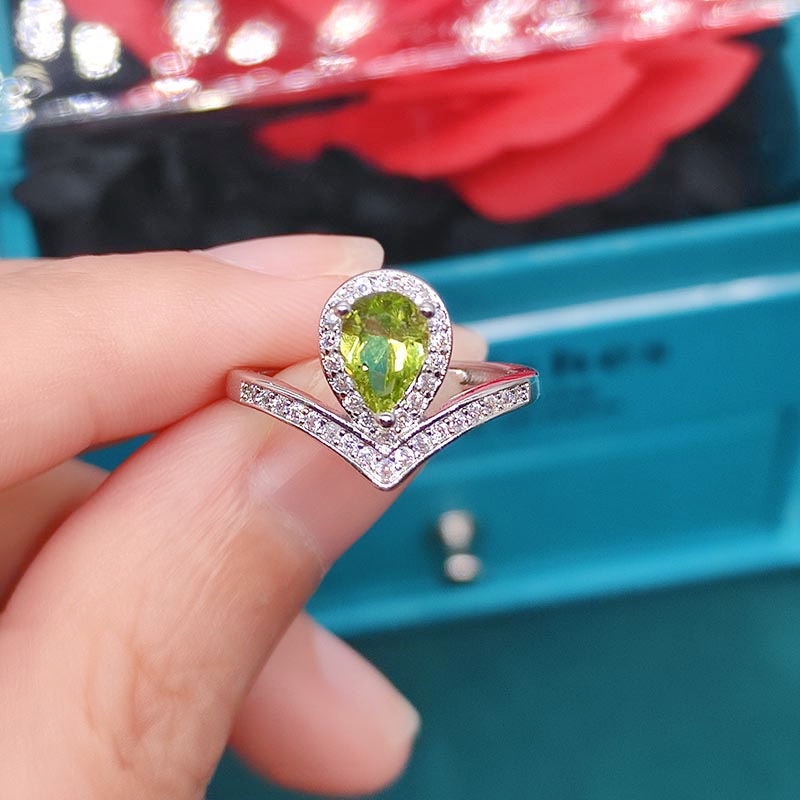 Detail Goldkingdom Aksesoris Perhiasan Fashion Ready Stock Cincin Topaz Biru Langit Alami Olivine Water Drop Pear Crown Ring