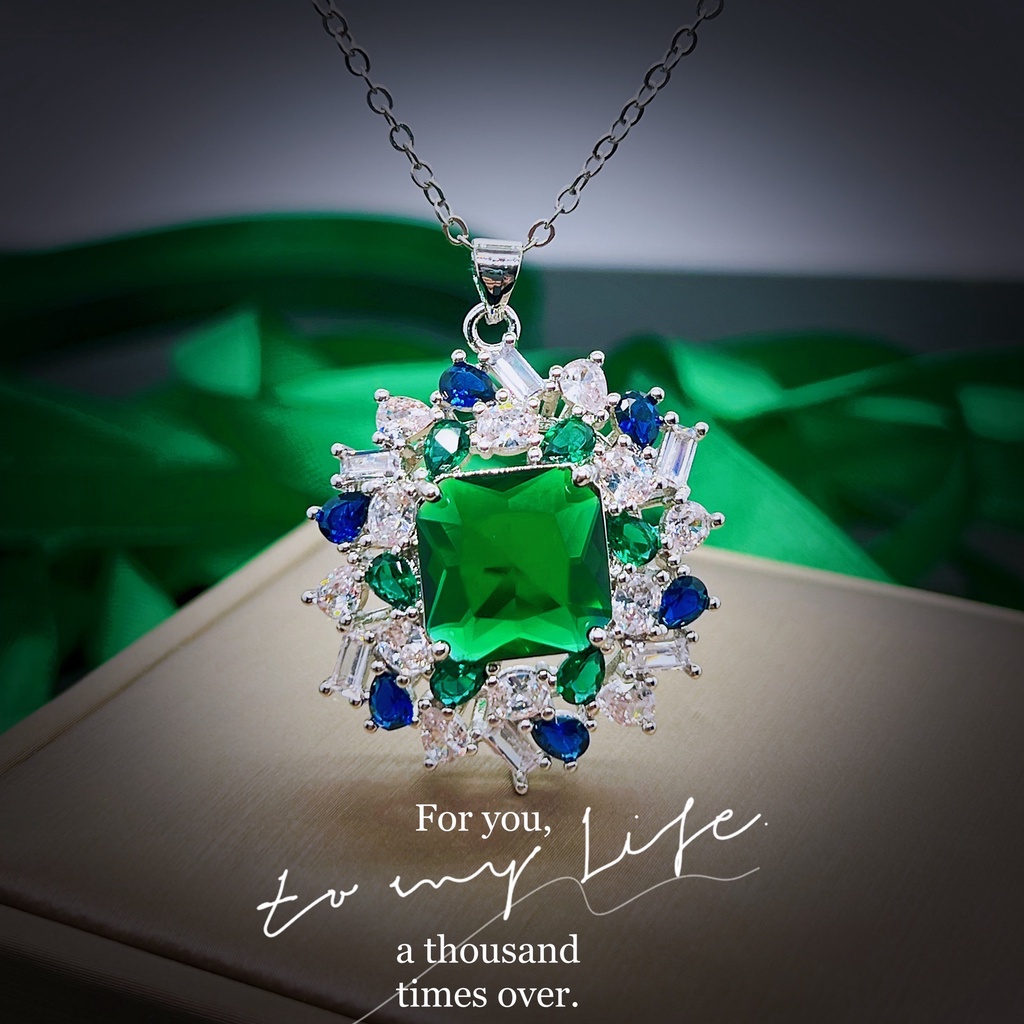 Detail Goldkingdom Aksesoris Perhiasan Fashion Ready Stock Retro Cincin Emerald Warna Senada Batu Kreatif Liontin Cincin Set