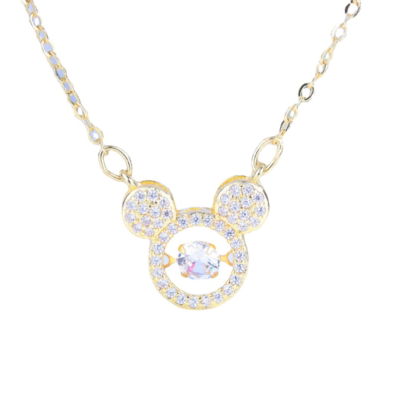 Detail Goldkingdom Aksesoris Perhiasan Fashion Ready Stock Kalung Mickey Mouse Pintar Fashion Korea Micro Set Dengan Berlian Berdetak Jantung Liontin