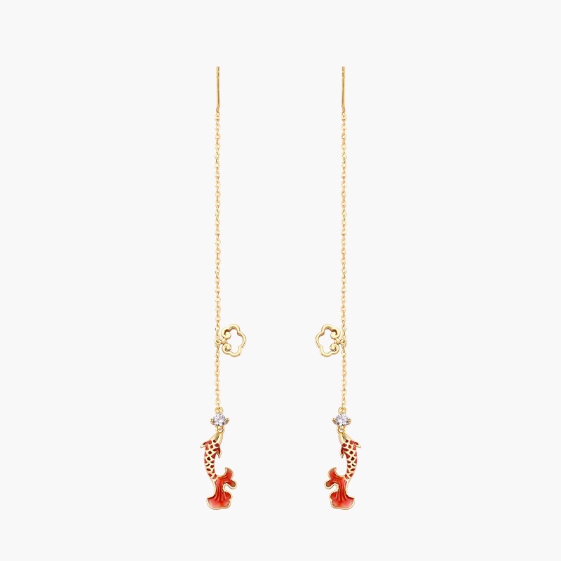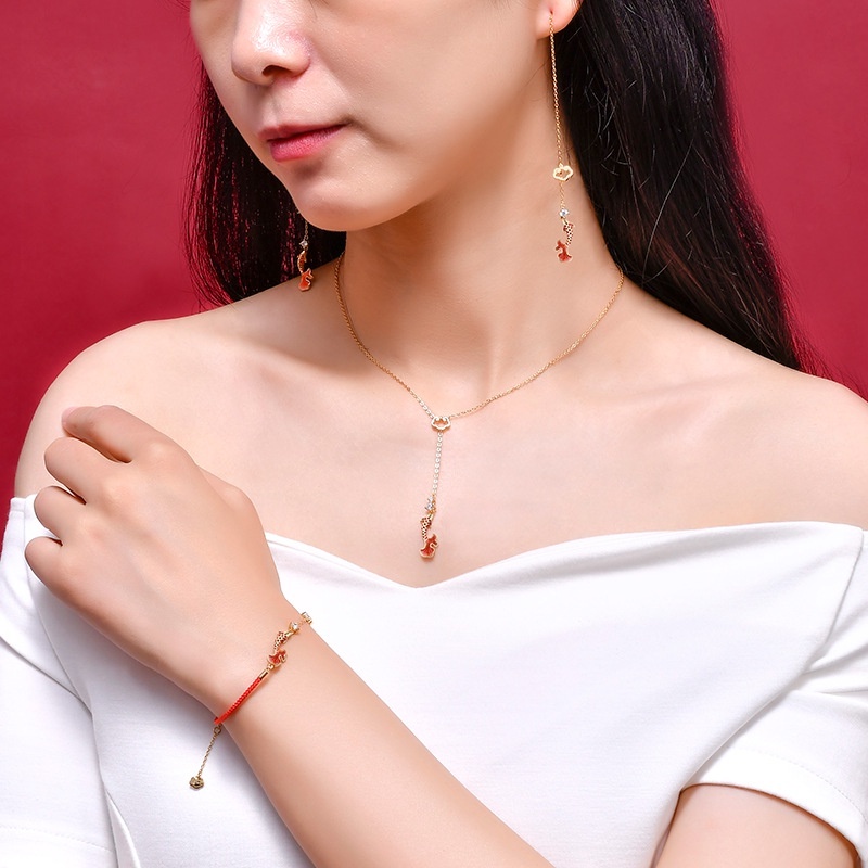 Aksesoris Fashion > Set & Paket Aksesoris > Goldkingdom Fashion Perhiasan Aksesoris Ready Stock Mewarisi Hukum Kuno Ruyi Brokat Set Ikan Gurame Enamel Warna Kalung Earline Rajutan Tali Merah Xiangyun Gelang