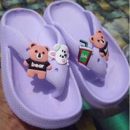 GOLFER/ Sandal karet jepit tebal model ke kinian untuk perempuan kecil dan tanggung motif beruang