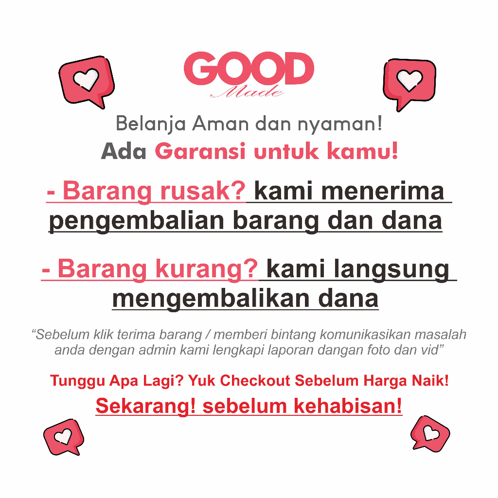 HARGA PROMO! AKAN NAIK SEWAKTU-WAKTU ! SEMUA PRODUK GOOD MADE BERGARANSI !