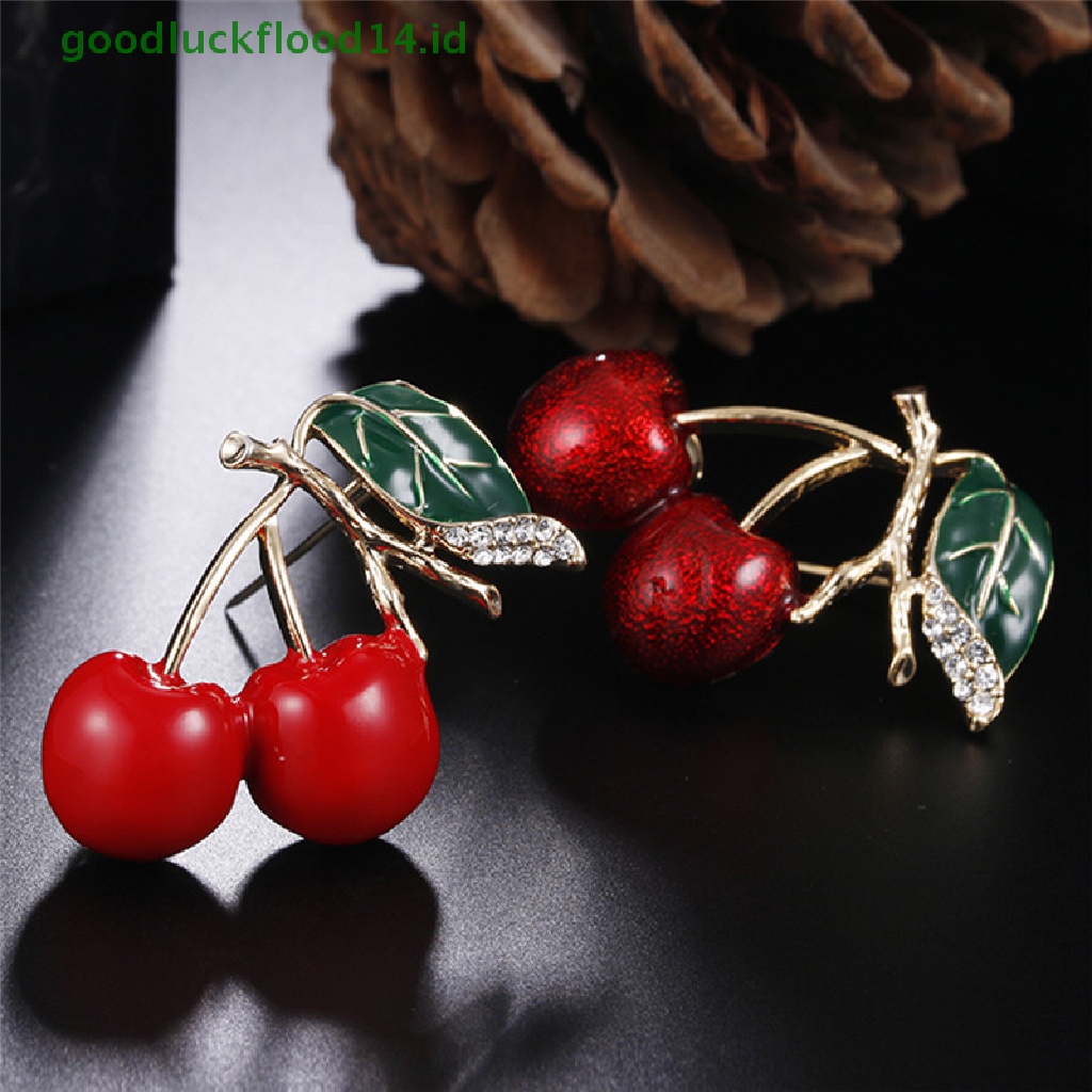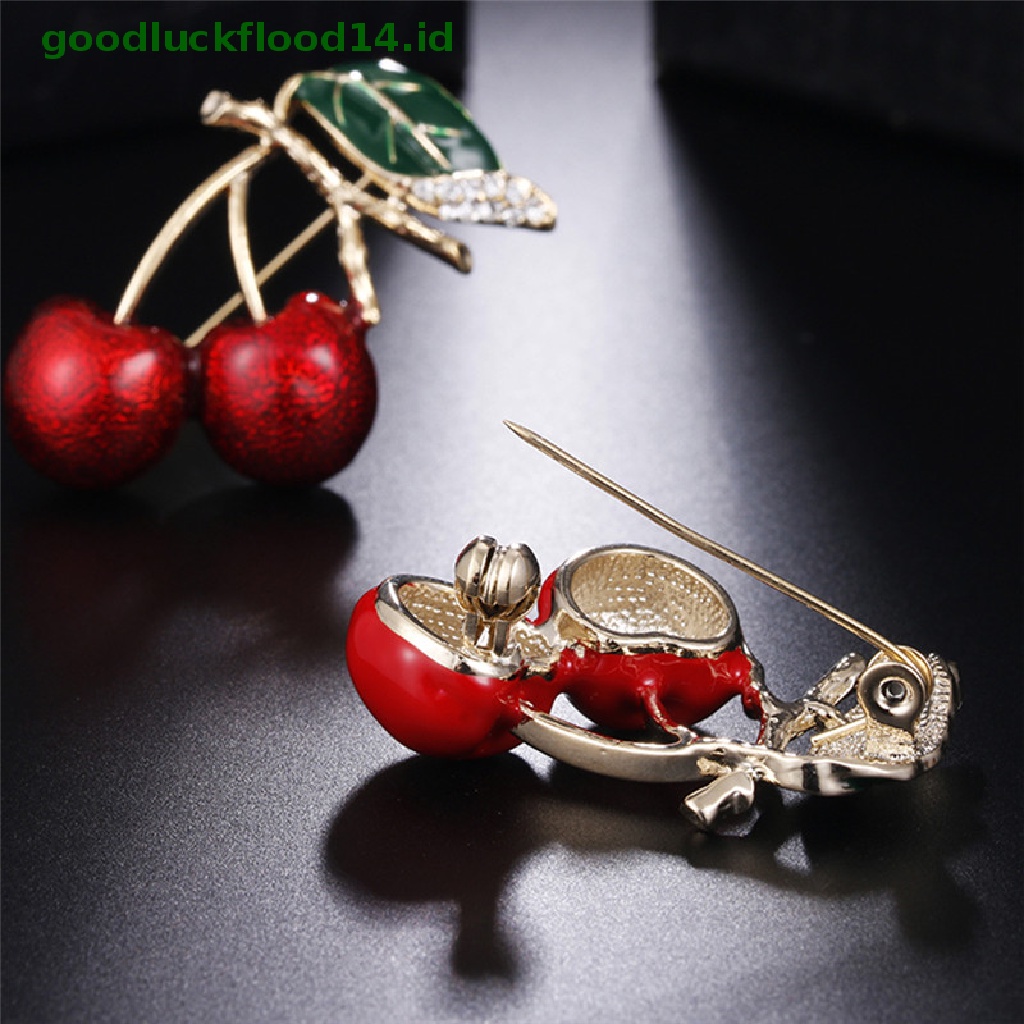 Detail [GOOGFOUR] Enamel Merah Cherry Logam Bros Pin Tombol Kristal Bros Sweater Klip Perhiasan [TOP]